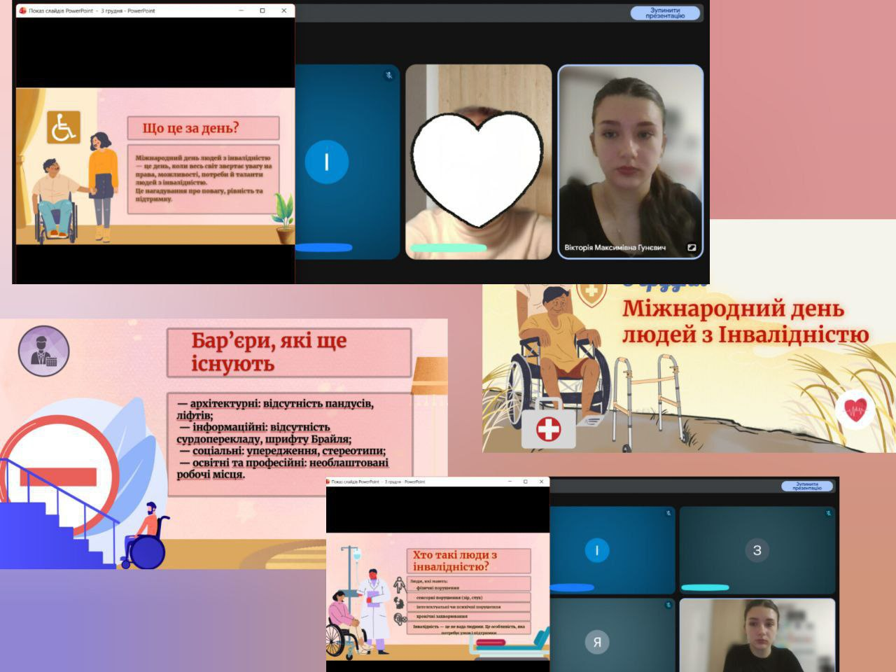 У межах акції «16 днів проти насильства» соціальним педагогом Гунєвич Вікторією Максимівною проведено захід для учнів 5-6 класу, присвячений Міжнародному дню людей з інвалідністю.
