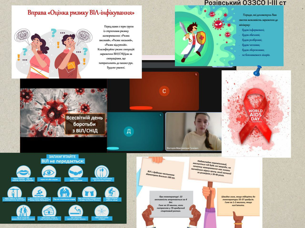 Соціальним педагогом Гунєвич Вікторією Максимівною проведено профілактичний захід для учнів 8 класу, присвячений Всесвітньому дню боротьби з ВІЛ/СНІДом. Ця тема є складовою акції «16 днів проти насильства», адже поширення ВІЛ нерідко пов’язане з ризикованими, примусовими чи небезпечними ситуаціями, що можуть включати порушення прав людини та елементи насильства.