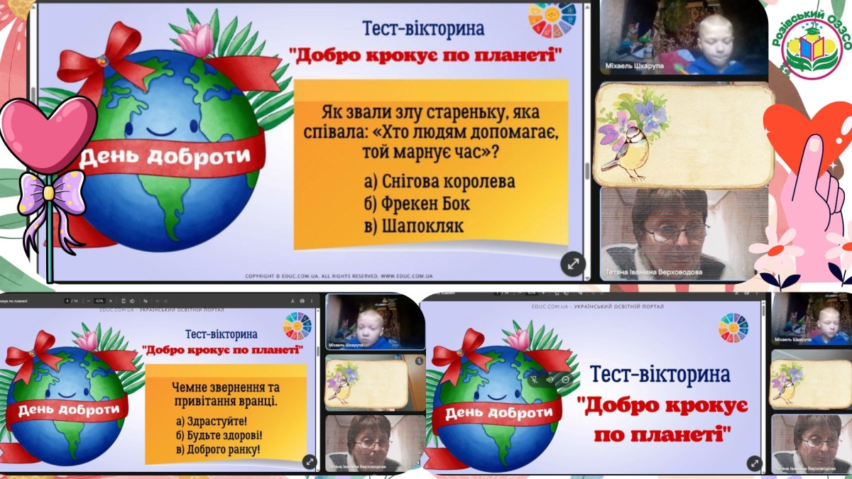 Вікторину " Добро крокує по планеті " провела для учнів 4 кл. вчитель Верховодова Т.І