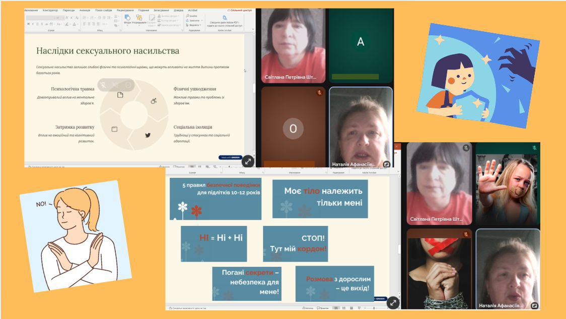 Під час зустрічі учні ознайомилися з поняттями: «особисті межі», «недоторканність тіла», «сексуальне насильство», «експлуатація дітей», а також із видами небезпечних ситуацій, які можуть виникати як у реальному житті, так і в онлайн-середовищі. Практичний психолог акцентував увагу дев’ятикласників на важливості вміння сказати «ні», звертатися по допомогу до дорослих, яким довіряють, та знати, куди можна повідомити про загрозу чи випадок насильства.