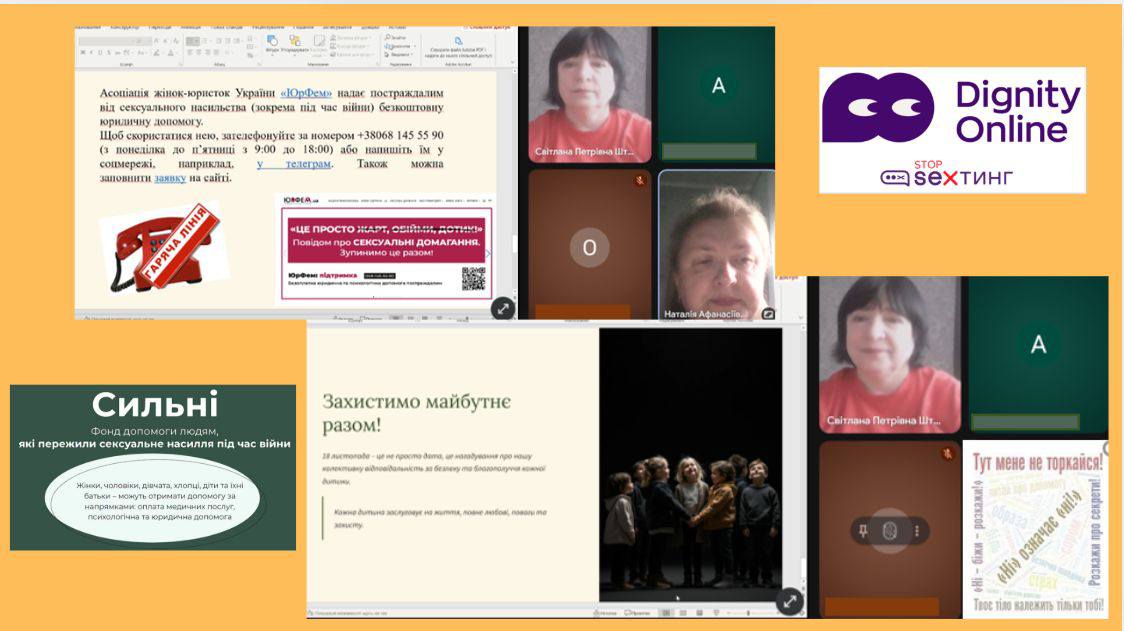 У ході заняття були розвінчані поширені міфи щодо насильства, наголошено на недопустимості замовчування проблеми та важливості своєчасного звернення по допомогу, озвучено наслідки сексуального насильства.